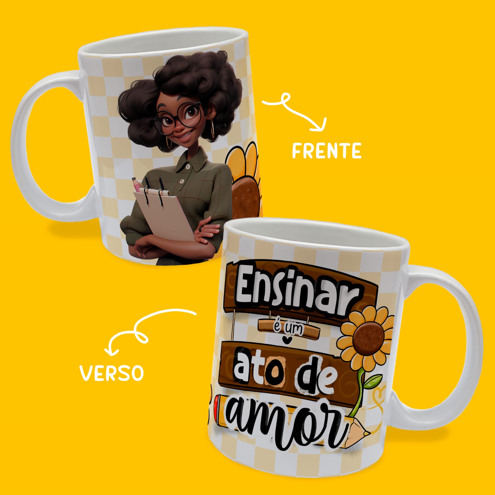 Nossas canecas foram criadas para inspirar e acompanhar os heróis da sala de aula em sua jornada diária. Com designs exclusivos e mensagens motivacionais, cada caneca é mais do que uma simples peça de cerâmica - é uma declaração de gratidão ao incrível trabalho dos professores.👩🏫